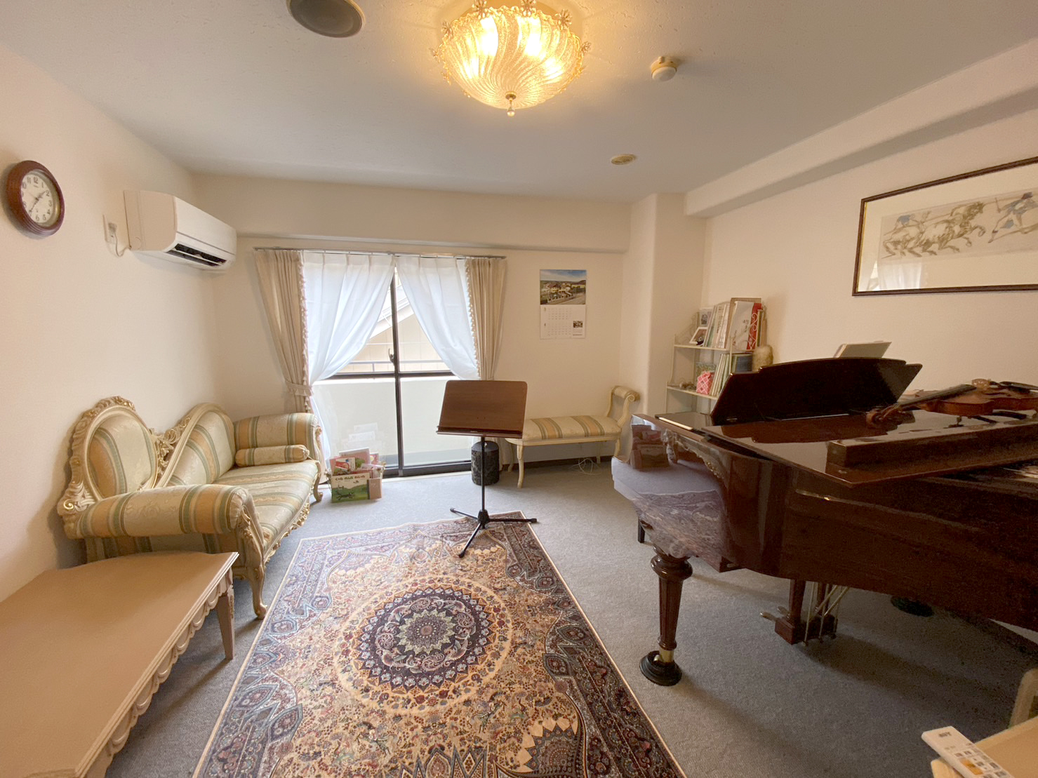 阪急電車「芦屋川」駅から徒歩3分の特別レッスン室。グランド・ピアノを備えた完全防音室で、井上・北村先生の集中レッスンを行っています。
